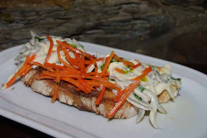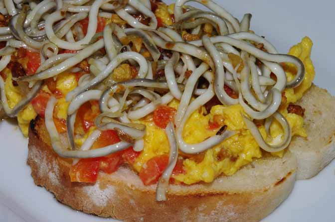 Tosta de gulas al ajillo, revuelto de piquillo y reducción de módena - Se abre en ventana nueva