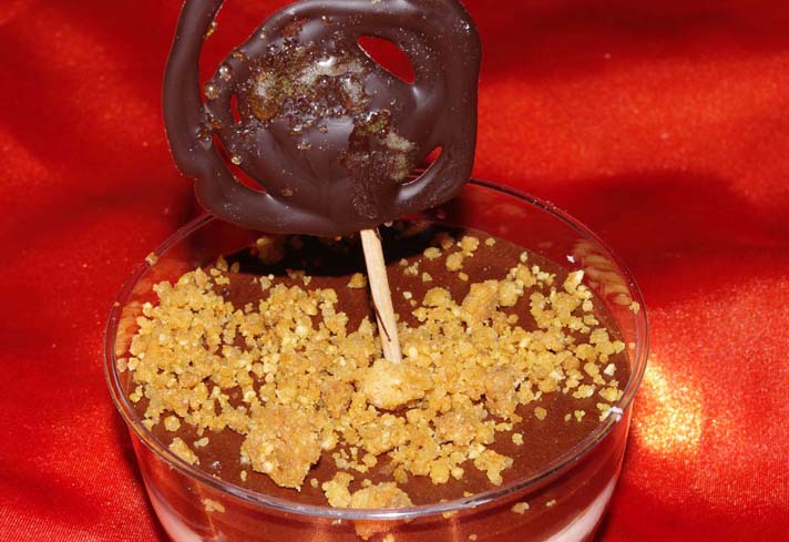 Cremoso de Chocolate, Interior de Frutos rojos, Streussel de Almendras y Piruleta de Petazetas - Se abre en ventana nueva